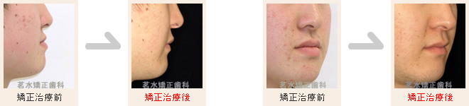 状態によっては、外科矯正でも矯正単独でも、どちらでも治療が可能なボーダーライン上にある場合もあります。 治療結果は下記のように異なります。